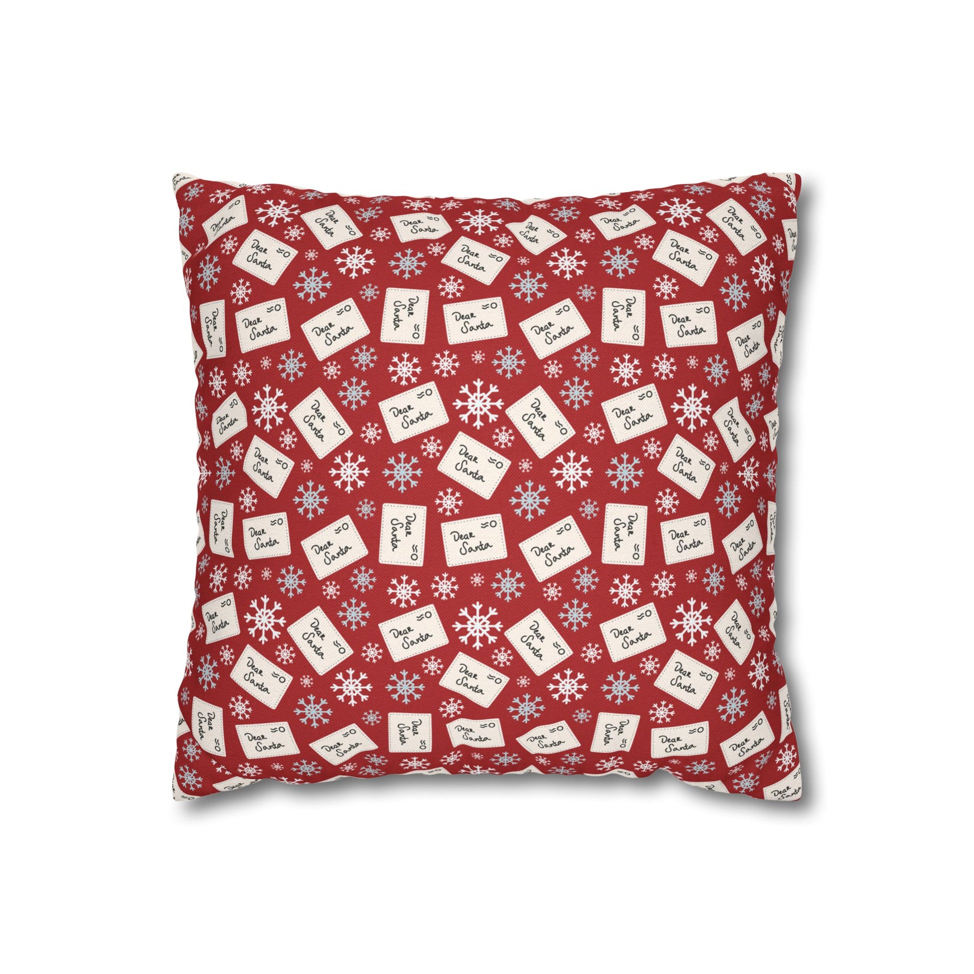 Add a little North Pole charm to your holiday décor with this DownYondAR Christmas Collection Dear Santa Throw Pillow. Featuring a repeating pattern of handwritten Santa letters and snowflakes on a rich red background, this pillow captures the playful spirit of Christmas morning and cozy winter nights.